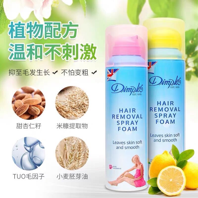 【Dimples杜碧斯脱毛喷雾】在英国已经热卖N年了一直致力于脱毛产品的研发,对于脱毛这块真的拿捏的死死的!蕴含有效成分,能软化体毛和根部的接触部分,让体毛容易断开,光滑效果相比持久,感配方!!