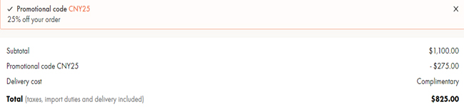 -满1000€/£/$/8000 CNY/ 9000 HKD即享75折,需用码:CNY25;
