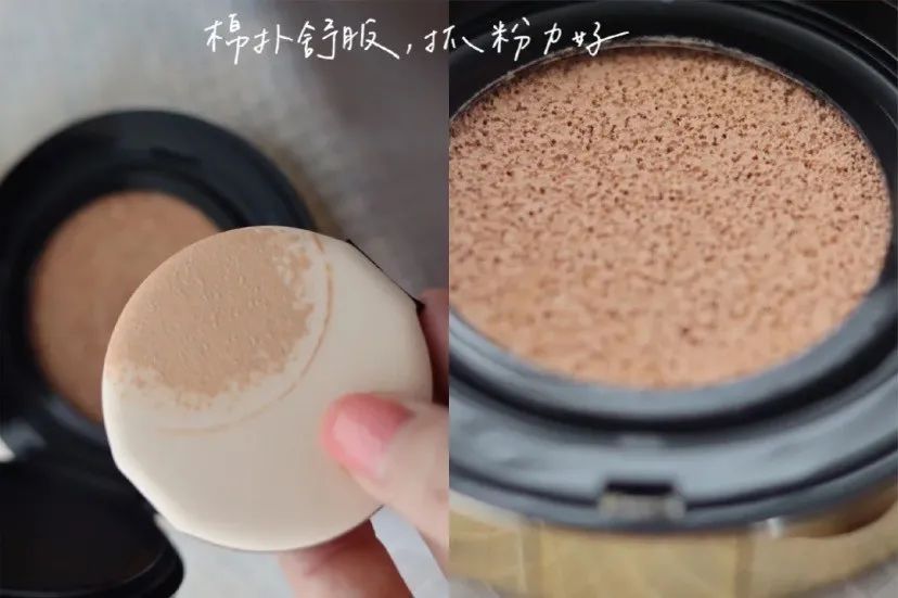 气垫芯就像海绵一样轻轻的按压就会有粉底液上来释粉力很强一点点粉就能在脸上扑很多下