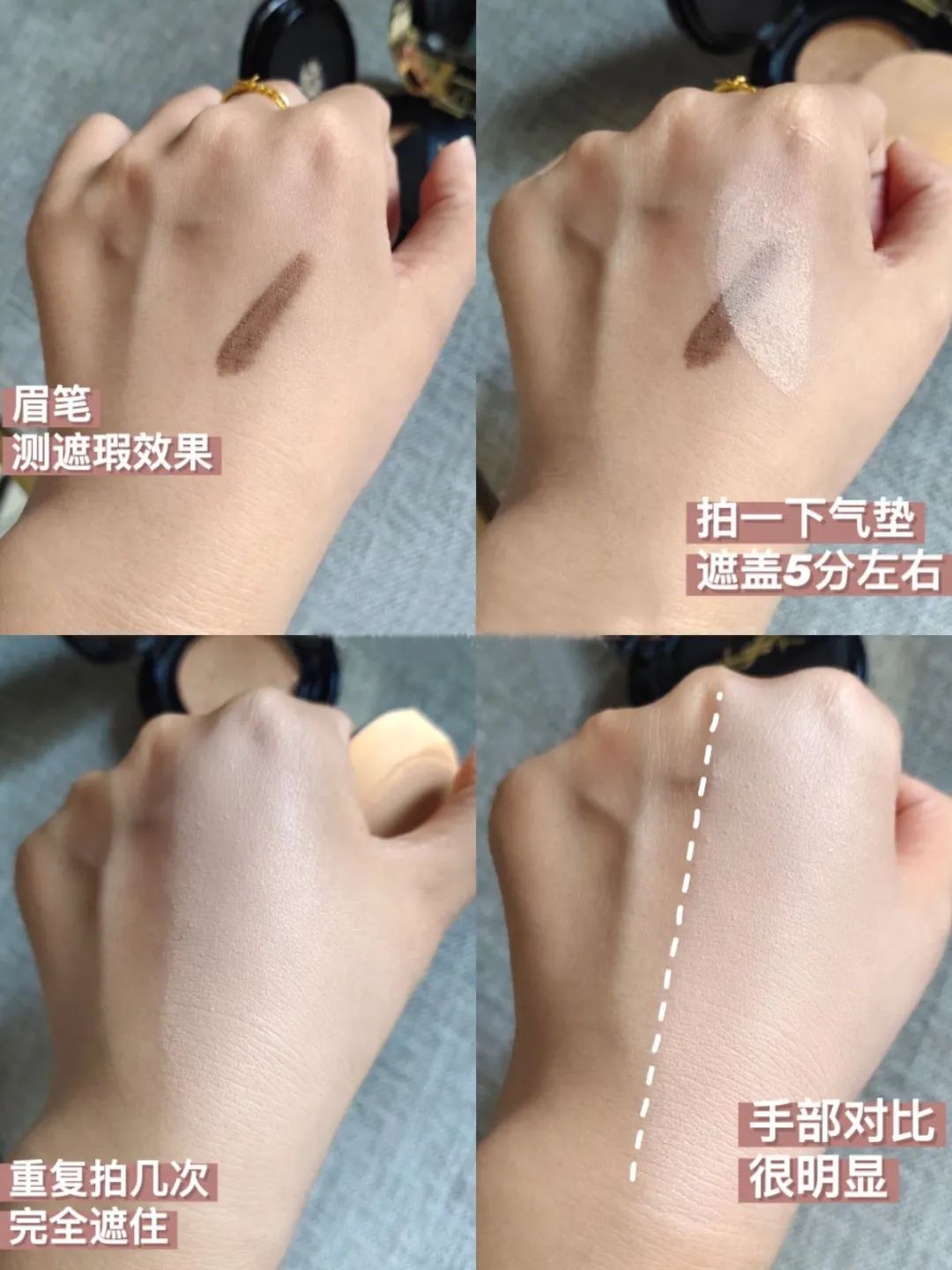 刚上妆的时候是有点奶油肌的感觉,等到半小时过去后,慢慢竟然有哑光的效果,还挺神奇的,说是四倍吸附油脂这话没毛病!