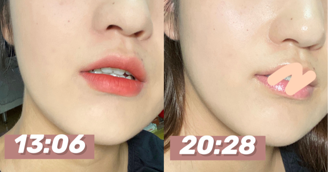 这是上妆7小时的对比图,越到晚上,脸上带点光泽的时候越好看,一天的外拍下来,根本不用在意暗沉卡纹,总体看下来,YSL皮气垫很能打!