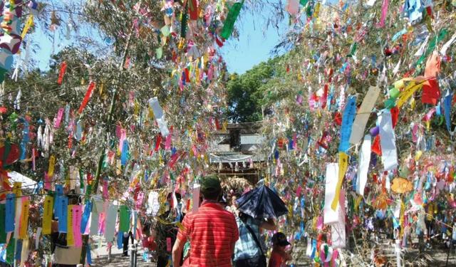 此外,日本各地每年夏天还会举办一年一度的“七夕祭”,人们身穿传统服装,载歌载舞,太鼓阵阵,“短册”飘飘的街头巷尾挤满观看和游玩的大人孩子。
