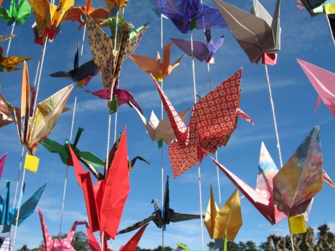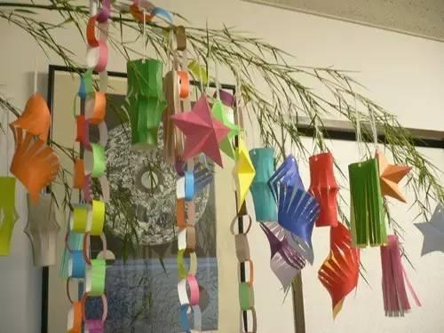 在七夕这天,除了要在竹子上挂上彩色纸条许愿,日本人还会用纸折出各种形状进行装饰: