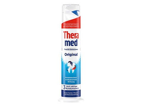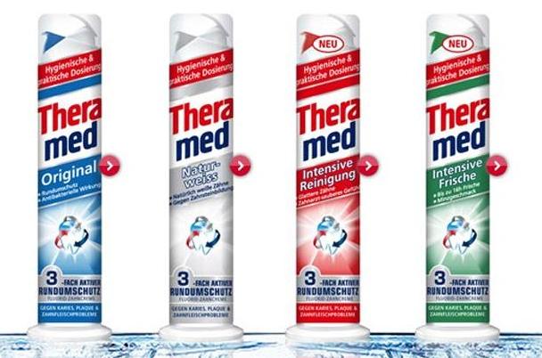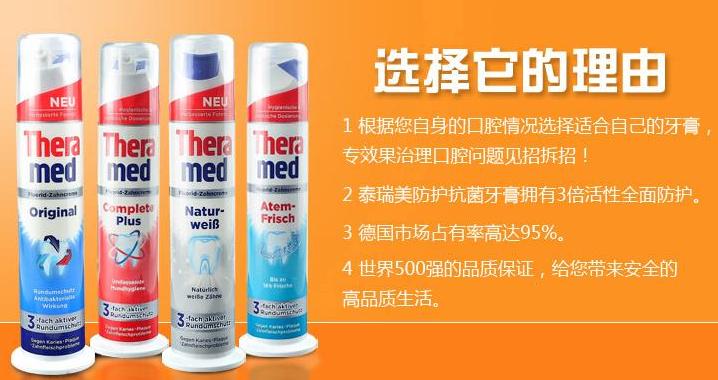 现货!任两支包邮!到手价只要45元!德国原装汉高泰瑞美立式牙膏 蓝色/美白防护型 。
