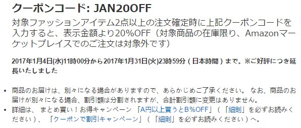 =日本亚马逊现有男女儿童服饰配饰专场,两件及以上享额外8折优惠,需用码JAN20OFF。不少款式还能直邮中国,距离近,日亚直邮还是比较方便快捷的,饰的Size方面毕竟是亚洲人群,更加接近国人需求;截止至北京时间1月31日;