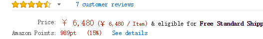 目前日亚自营特价6480日元(约387元,不含运费),返989日亚积分,积分可以当钱花,1积分=1日元,相当于再减去989日元,非prime会员凑单满2000日元可免日本境内运费。日亚显示发货重量为113g。