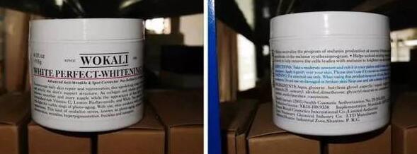 “一些消费者网淘时贪图便宜,给不法分子牟取暴利的可乘之机."执法人员展示了一瓶护肤霜,其包装外观与美国知名护肤品牌科颜氏极其相似,但原本的“KIEHL'S”品牌字样被换成了“WOKALI”,标注产地也从U.S.A.(美国)也变成了P.R.C.(中国)
