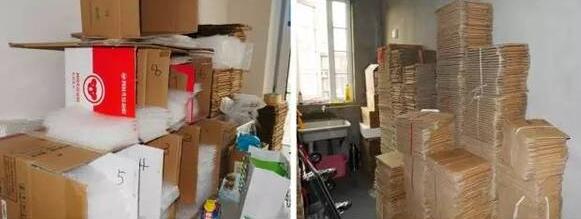 ▲高高堆起的包装材料、快递箱