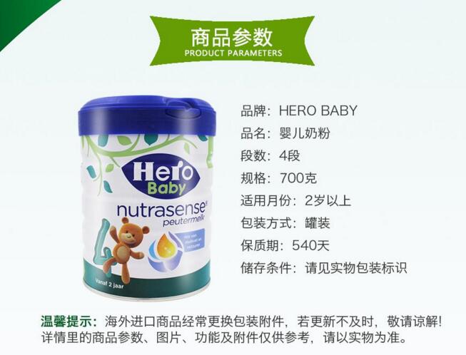 HERO BABY 荷兰美素 白金版婴儿4段奶粉 700克/罐(两岁以上)两罐装 包邮包税,到手价只要246元!