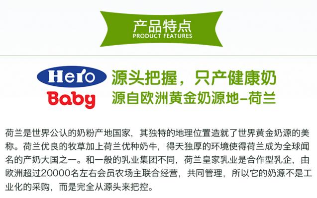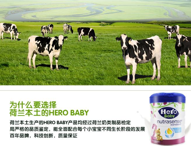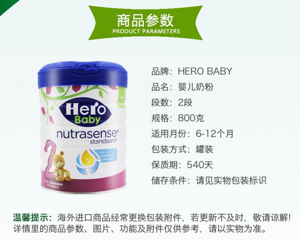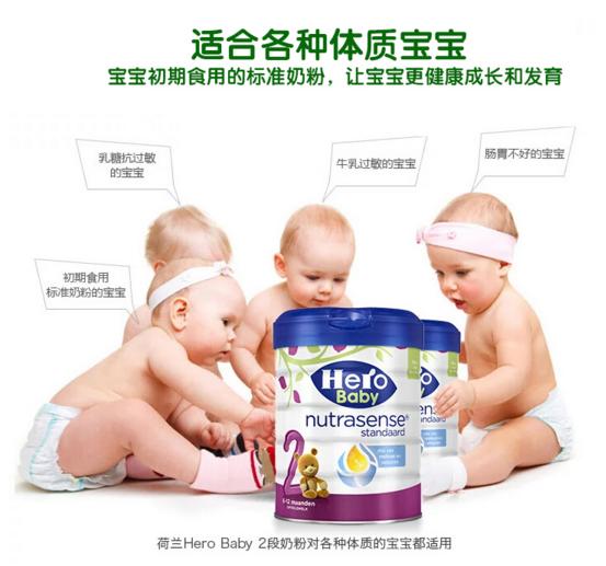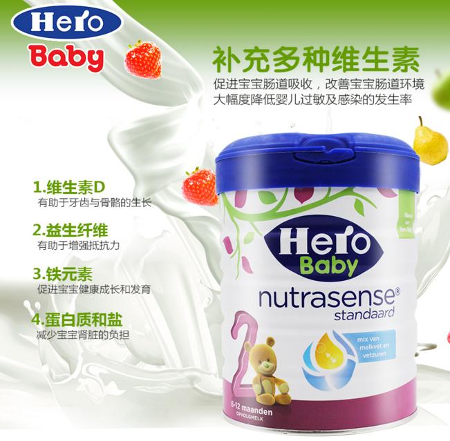HERO BABY 荷兰美素 白金版婴儿2段奶粉 800克/罐(6-12个月)两罐装 2罐包邮包税,现价260元!