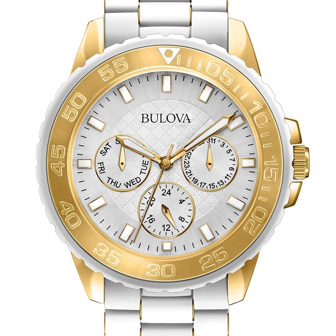 宝路华Bulova是Loews旗下的腕表品牌,由约瑟夫·宝路华于1875年在美国创立,产品主打入门,强调性价比。这款BULOVA 宝路华 CLASSIC 98N102 中性款时装腕表,搭载日本石英机芯,不锈钢镀金表壳,不锈钢镀金和橡胶表链,银色表盘中央有闪亮的菱格暗纹,夜光大三针和条形刻度设计,箭形指针方便读数,3点位置设有日期显示子表盘,9点位置设有星期显示子表盘。表径约40mm,厚约10mm,50m防水。适合日常佩戴。