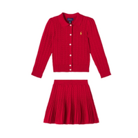 Polo Ralph Lauren 拉夫劳伦大童款针织绞花开衫+半裙套装