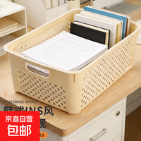 桌面收纳筐整理盒办公室书桌写字台大容量桌面收纳收纳盒书桌文具收纳篮 大号【29*19.5*11.5CM】1个装