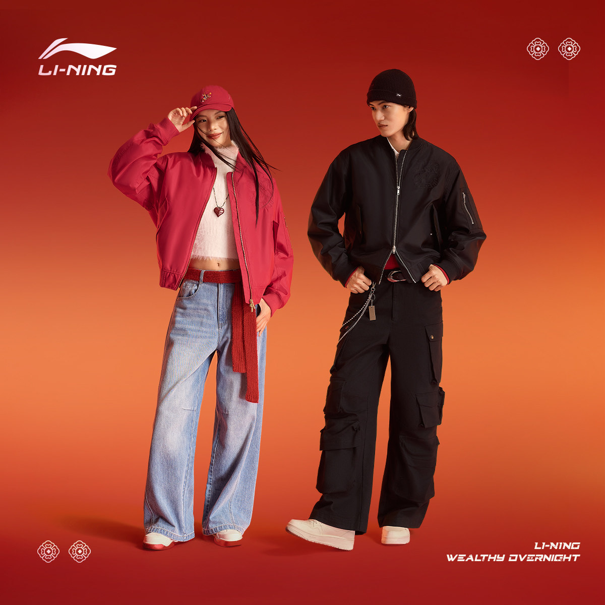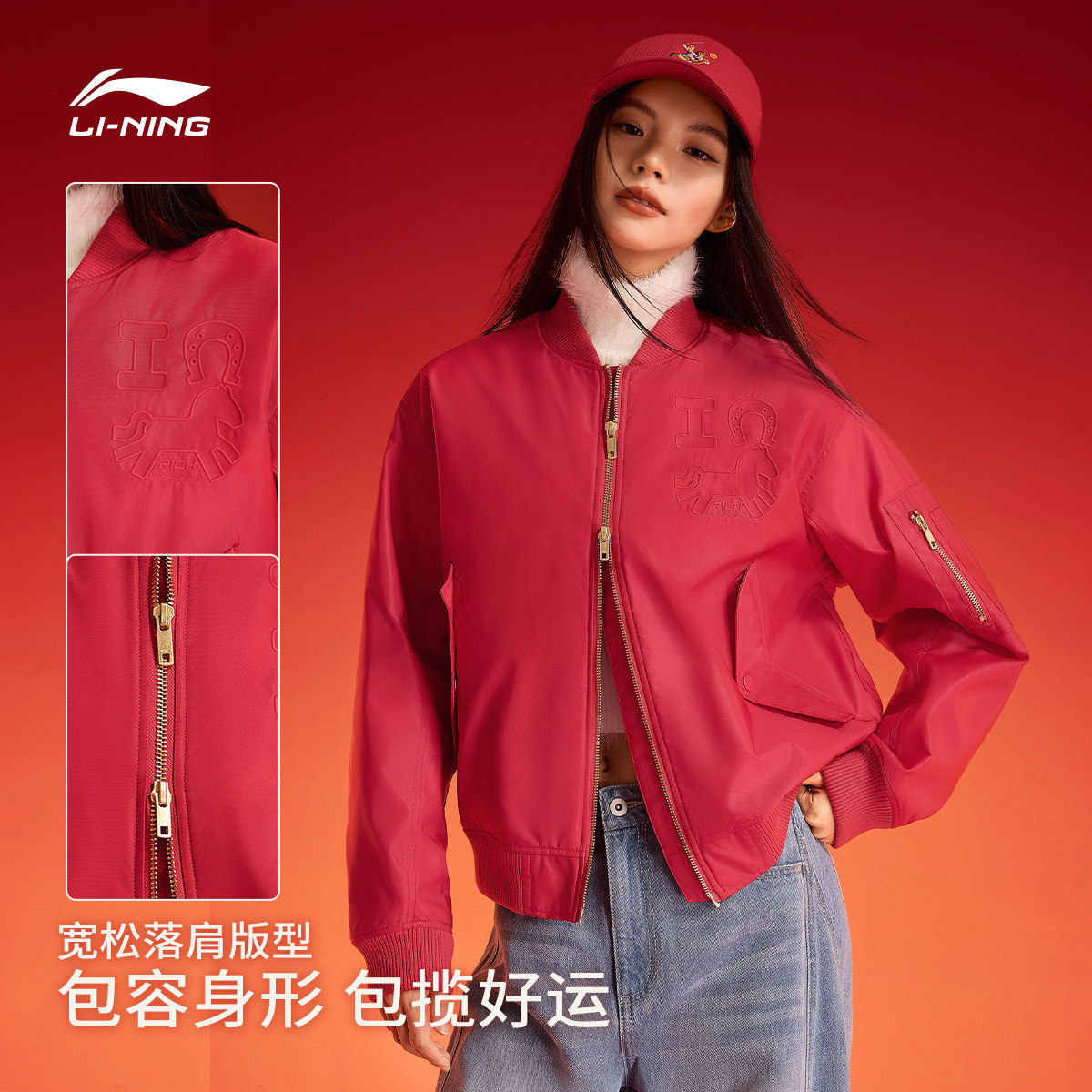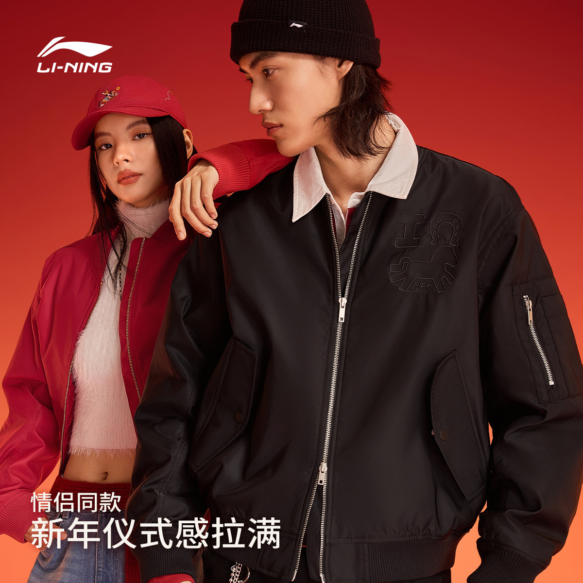 李宁马上有钱情侣红色棉服