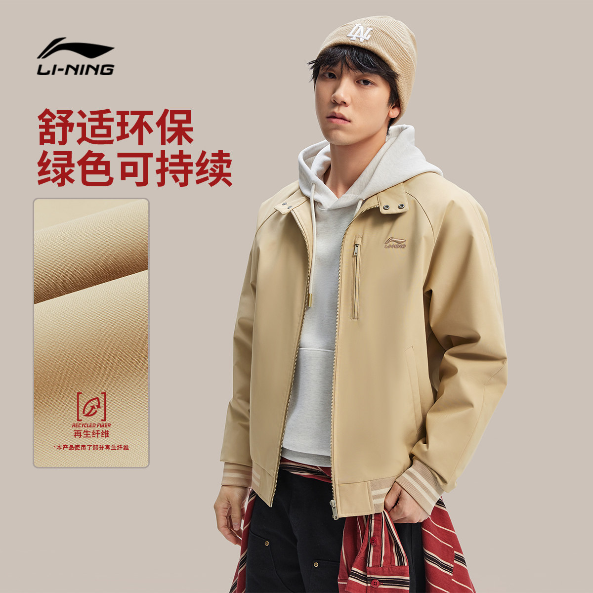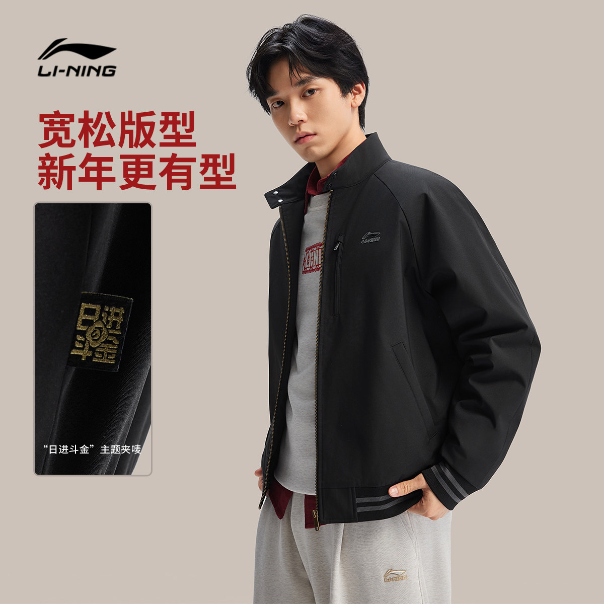 李宁日进斗金哈灵顿夹克男士棉服