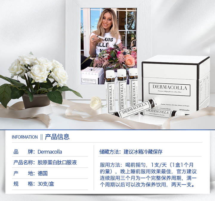 DERMACOLLA纳米医美级胶原蛋白肽口服液。INS上刷到爆的胶原蛋白肽口服液,欧洲时尚护肤界备受追捧!