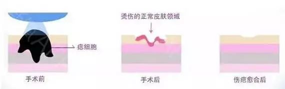 二氧化碳激光的碳化作用可使创面快速结痂,避免出血,但即刻会出现凹坑,恢复后仍然有较大可能会留下类似痘坑的印子。