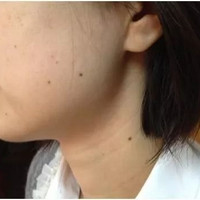 复合痣稍深一些,痣细胞位于真表皮交界处及往下的真皮中浅层,一般呈现为淡褐色或棕褐色,通常都略高于皮肤表面,有一定程度的凸起。