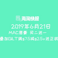 1、MAC美国:全场唇膏 买二送一 >> 可叠加GILT满$75减$25+送正装!10%返利