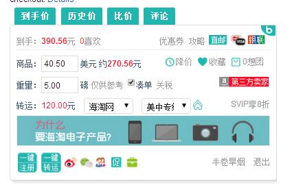 6、海淘网APP、海淘盒子均支持商品历史价、一键自动填写转运等。美亚一键转运攻略>