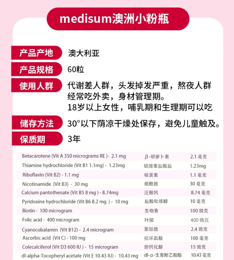 澳大利亚medisum/埃迪生 瘦维素小粒女士复合维生素女性维生素60粒
