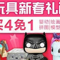 中国亚马逊现有玩具新春礼遇,买四免一,众多品牌参与其中,领取优惠券后购买,加入购物车,系统自动扣除优惠金额;不与其他促销共享,众多品牌参与其中;温馨提示:本次活动仅限亚马逊自营商品;第三方卖家、Z不参与活动。活动截止北京时间2017年1月31日