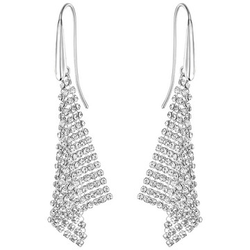 就以这对镀白金色耳环,展现闪烁耀眼的银色魅力。每只耳环均缀有闪亮悦目,三角造型的透明仿水晶网布,大胆妩媚的设计,可为装扮注入浪漫璀璨的风采。