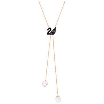 这款Y形项链以品牌的天鹅标志为特色,除通过Pointiage®低温陶瓷镶嵌技术镶有闪亮迷人的黑色仿水晶外,两枚精致垂饰更以镀玫瑰金色金属搭配仿水晶与仿水晶珍珠。充满现代感的设计,让您轻松展现时尚魅力。