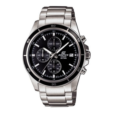 表款以热销型号EF-503为原型,采用流行经典三盘六指针设计,黑色表盘搭配 银白色不锈钢表身,彰显高质感。同时搭载秒表(精确到1/10秒),100米防水,日期显示多样功能。主要功能:* 100米防水 * 秒表精确到1/10秒 * 日期显示