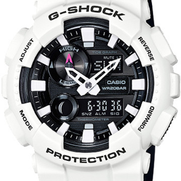 以原畅销款 原有G-LIDE基础上,加入城市体育的设计理念的革新。强化了刻度及指针的可视性。 简洁的大表盘设计。主要功能:*防震*防磁*200米防水*自动LED照明*世界时间(48个城市)*秒表(1/100秒)*倒计时*每日闹铃,整点响报*间歇响报*全自动日历*温度*潮汐月相*12/24小时制*按键音开关表壳纵向尺寸:55.0mm表壳横向尺寸:51.2mm表壳厚度尺寸:16.9mm