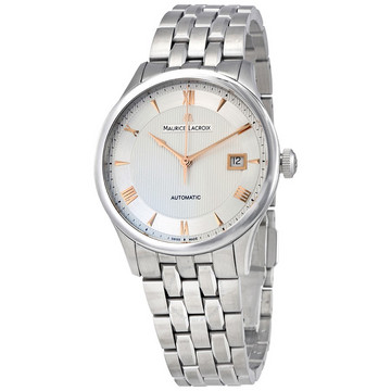 这款匠心系列 MP6407-SS002-110男士机械腕表,采用ML 155自动机芯,38小时动力储存,银色竖条装饰表盘,玫瑰金色剑形指针和罗马数字时标,3点位置玫瑰金色日历小表窗,蓝宝石表镜和背透,精钢表壳和表链,表径38毫米,50米生活防水。