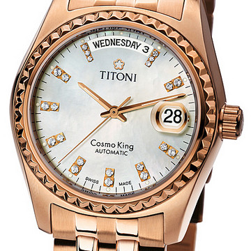 COSMO787 RG-309尺寸:男表机芯:自动机芯ETA2834-2功能:三指针双日历表壳:PVD镀玫瑰金表径:38.5 毫米表面玻璃:带放大镜蓝宝石玻璃防水性能:100 米防水表盘:贝壳色,皓石表带:玫瑰金品牌:梅花;系列:Cosmo King宇宙系列;款式:男表;机芯:自动机芯;机芯型号:ETA2834-2;表壳:PVD镀玫瑰金;表耳:20mm;纵向表耳间距:45.5mm;表盘尺寸:38.5mm;厚度:12mm;表冠:普通;表底:不透底;表镜:带放大镜蓝宝石玻璃;表盘:贝壳色,皓石;表带:玫瑰金;表带颜色:金色;表扣:折叠扣;防水:100米;功能:日期显示 星期显示 大三针;
