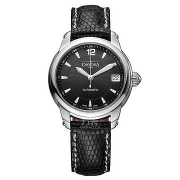 品牌:迪沃斯;系列:Diva 女主角系列;款式:女表;机芯:自动机械机芯;机芯型号:ETA 2824-2;表壳:不锈钢;表耳:16mm;表盘尺寸:34mm;厚度:10.8mm;表冠:普通;表底:透底;表镜:蓝宝石水晶玻璃;表盘:黑色放射纹;表带:蜥蜴皮;表带颜色:黑色;表扣:针扣;防水:100米;功能:日期显示 大三针 夜光;推出年份:2011年;