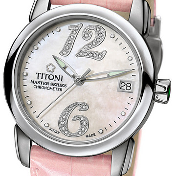 MASTER SERIES23588 S-ST-331尺寸:女表机芯:自动机芯ETA2824-2,精密时计功能:三指针单日历表壳:钢表径:33.5 毫米表面玻璃:双拱型蓝宝石玻璃,防反射处理防水性能:100 米防水表盘:贝壳色,刻度/钻石表带:皮带底盖:透明宝石:钻石品牌:梅花;系列:Master Series大师系列;款式:女表;机芯:自动机芯;机芯型号:ETA2824-2,精密时计;表壳:不锈钢;表盘尺寸:33.5mm;表冠:旋入式;表底:透底;表镜:双拱型蓝宝石玻璃,防反射处理;表盘:贝壳色,刻度/钻石;表带:真皮;表带颜色:粉红色;表扣:折叠扣;防水:100米;功能:日期显示 大三针 镶钻;