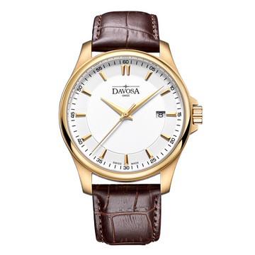 典雅银色表盘,拉丝工艺呈现,大气立体条字刻度搭配大三针,简约时尚。表壳精选精钢材质,光滑舒适不利手。搭配黑色真皮表带,舒适之余彰显时尚。小巧纹路表冠,简约时尚,方便调节时间。搭配瑞士Rond515机芯,带有日期显示功能,走时精准且性能稳定。注重细节的设计以及精准的走时,迪沃斯精湛的制表工艺一览无遗。品牌:迪沃斯;系列:Classic Quartz 经典石英系列;款式:男表;机芯:瑞士石英机芯;机芯型号:RONDA 515;表壳:PVD镀金;表耳:20mm;纵向表耳间距:46mm;表盘尺寸:39mm;厚度:8mm;表冠:普通;表底:不透底;表镜:蓝宝石水晶玻璃;表盘:白色;表带:真皮(ECHT LEDER);表带颜色:棕色;表扣:针扣;防水:100米;功能:日期显示 大三针;推出年份:2012年;