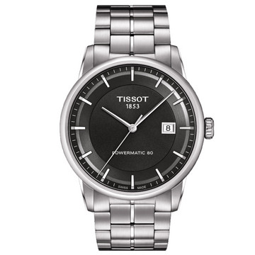 品牌:天梭;系列:Luxury系列;款式:男表;机芯:机械机芯;机芯型号:Powermatic 80.111;表壳:精钢;表盘尺寸:41mm;厚度:9.75mm;表底:透底;表镜:蓝宝石水晶玻璃;表盘:烟灰色;表带:精钢;表带颜色:灰色;表扣:蝴蝶扣;防水:50米;功能:日期显示 大三针;
