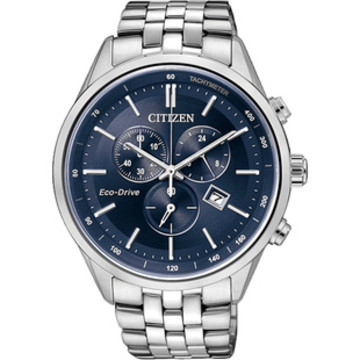 西铁城光动能男表系列男表;机芯:光动能;机芯型号:H504;表壳:不锈钢;表盘尺寸:41mm;厚度:11mm;表冠:普通;表底:普通;表镜:蓝宝石玻璃;表盘:蓝色;表带:不锈钢;表带颜色:银色;表扣:双按式三折扣;防水:100米;功能:日期显示 夜光 计时码表;