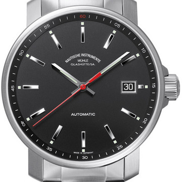 品牌:格拉苏蒂·莫勒;系列:Sporty Instrument Watches 运动系列;款式:中性;机芯:自动机械机芯;机芯型号:SW 200-1;表壳:不锈钢;表耳:18mm;表盘尺寸:36.6mm;厚度:10.4mm;表冠:旋入式表冠;表底:透底;表镜:蓝宝石水晶玻璃;表盘:黑色;表带:不锈钢;表带颜色:银色;表扣:蝴蝶扣;防水:100米;功能:大三针 日期显示 夜光;推出年份:2006年经典款;