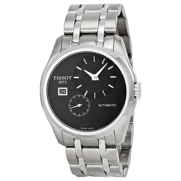 TISSOT 天梭这款Couturier系列男士机械腕表采用两个外切小表盘显示时分和秒,日期于9点位置显示,瑞士自动机芯,42小时动力储存,39毫米表径,蓝宝石镜面,100米防水,优雅简约,日常百搭。