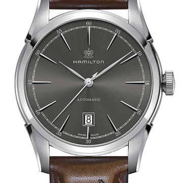 自由气概腕表充满质感的皮带上用激光蚀刻着意味深远的名言 -“没有自由的人生是可悲的”。搭载拥有超过3天动力储存的H-10自主机芯,加上独特而精密的机芯打磨工艺,使这款复古腕表的摩登意味油然而生。品牌:汉米尔顿;系列:美国经典-爵士系列;款式:男表;机芯:自动机械机械;机芯型号:汉米尔顿自主H10机芯;表壳:精钢;表耳:22mm;表盘尺寸:42mm;表冠:推拉式纹路表冠;表底:透底;表镜:蓝宝石镜片 防反光处理;表盘:灰色金属拉丝太阳纹表盘;表带:真皮;表带颜色:棕色;表扣:折叠扣;防水:50米;功能:日期显示 大三针;推出年份:2013年;