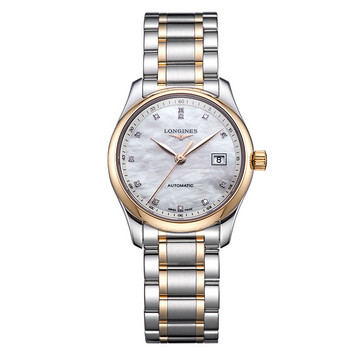 品牌:浪琴;系列:;款式:女表;机芯:自动机械机芯;机芯型号:L595自动上链机械机芯;表壳:精钢/18K玫瑰金;表盘尺寸:29mm;表底:透底;表镜:蓝宝石镜面;表盘:贝母表盘/钻石刻度;表带:精钢/18K玫瑰金;表带颜色:钢色/金色;表扣:蝴蝶双按扣;防水:30米;功能:日期显示 大三针 镶钻;