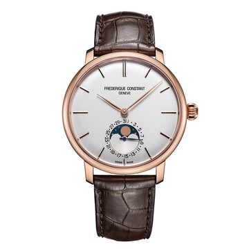 品牌:康斯登;系列:自家机芯系列;款式:男表;机芯:自动上链机械机芯;机芯型号:FC-705 振频每小时28,800次,动力储存40小時,配有26颗红宝石;表壳:不锈鋼 10微米包金;表耳:21mm;纵向表耳间距:47mm;表盘尺寸:42mm;厚度:11mm;表底:旋入式表冠;表镜:蓝宝石水晶玻璃;表盘:银色;表带:鳄鱼皮;表带颜色:深咖啡色;表扣:针扣;防水:30米;功能:日期;