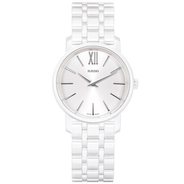 洁白陶瓷,质感独特,亲肤耐磨,简约双针,优雅耐看。 RADO 雷达是瑞士近百年历史的知名腕表品牌,专注于腕表的材质选取,在国内以高强度的钨钛合金和高科技陶瓷为消费者熟知。这款Diamaster系列R14065017 女表,白色陶瓷材质,耐磨亲肤,洁白光亮,表径33毫米,厚度8毫米,蓝宝石镜面,50米生活防水。