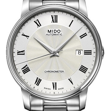 表面功夫:半球形蓝宝石水晶镜面表镜设计,让读数伴随着古典优雅气息,内敛的表冠设计更是让整表的外观出落得更为优雅、匀称,令人爱不释手。表盘直径为39毫米。罗马字刻度更显韵味盎然。表里如一:装配有经COSC认证的天文台机芯,该款腕表除了拥有夺人眼球的外观设计之外,在走时的精准性上同样出色卓越。品牌:美度;系列:贝伦赛丽 BARONCELLI系列;款式:男表;机芯:自动机械机芯;机芯型号:ETA2836-2;表壳:不锈钢;表耳:20mm;表盘尺寸:39mm;厚度:10.45mm;表冠:推拉式纹路表冠;表底:透底;表镜:蓝宝石水晶玻璃;表盘:银白色;表带:不锈钢;表带颜色:银色;表扣:蝴蝶扣;防水:50米;功能:日期显示 大三针 天文台认证 防震;推出年份:2011;