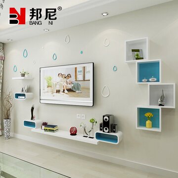 天猫 机顶盒墙上置物架电视背景墙装饰架路由器创意格子壁挂柜客厅搁板_海淘网