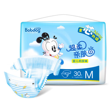 【京东商城】 【巴布豆M号】【京东超市】巴布豆(BOBDOG)超柔亲肤婴儿轻柔超薄纸尿裤(尿不湿)小包装中号M码30片【5-10Kg】