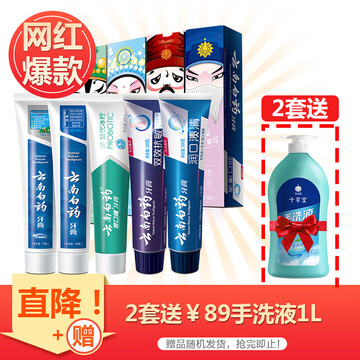 京东商城 【云南白药牙膏】【京东超市】云南白药 国粹经典牙膏套装(留兰100g+冬青100g+双效抗敏100g+冰凝薄荷100g+润口溃清100g)_海淘网
