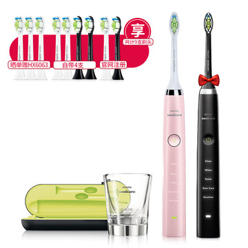 Philips飞利浦 钻石亮白型声波震动 电动牙刷 钻石系列黑钻+粉钻 HX9352+HX9362 2支装