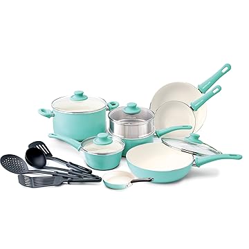 超划算的16件套装,一下就把做一桌好菜的厨房用品备全了!所有的锅具都采用用全铝材料打造,锅里涂有环保无毒的Thermolon 陶瓷不粘锅涂层,能很好的分布热量并保证热量不散失,热塑手柄柔软舒适不会烫手,可放心机洗。现有三种颜色可选,经典黑,活泼红和非常可爱的马卡龙色,高颜值套装放在厨房美美哒。