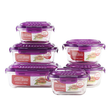 京东商城 【乐扣乐扣保鲜盒】乐扣乐扣(lock&amplock)玻璃保鲜盒套装微波炉饭盒便当盒带气孔LLG445S924紫色六件套紫色_海淘网